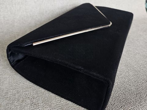 Juoda zomšinė delninė su metalo dekoracija